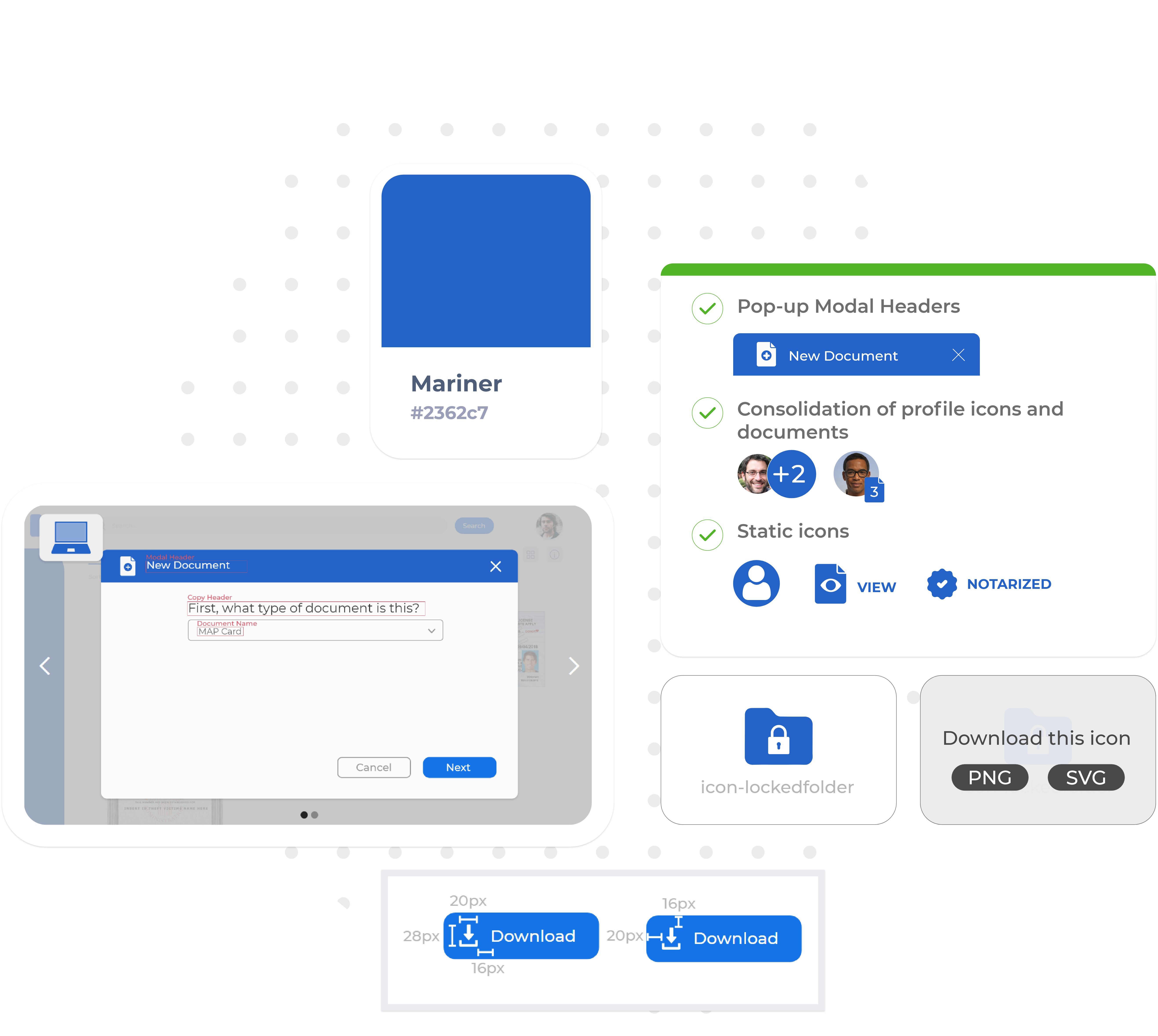 No need to start from scratch. This design system includes a component library that packages every single piece of the platform in specific components you can iterate, and build upon.