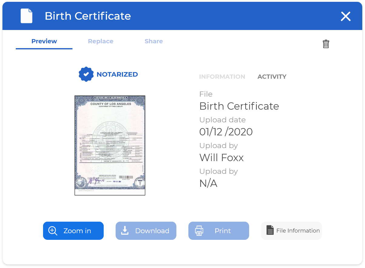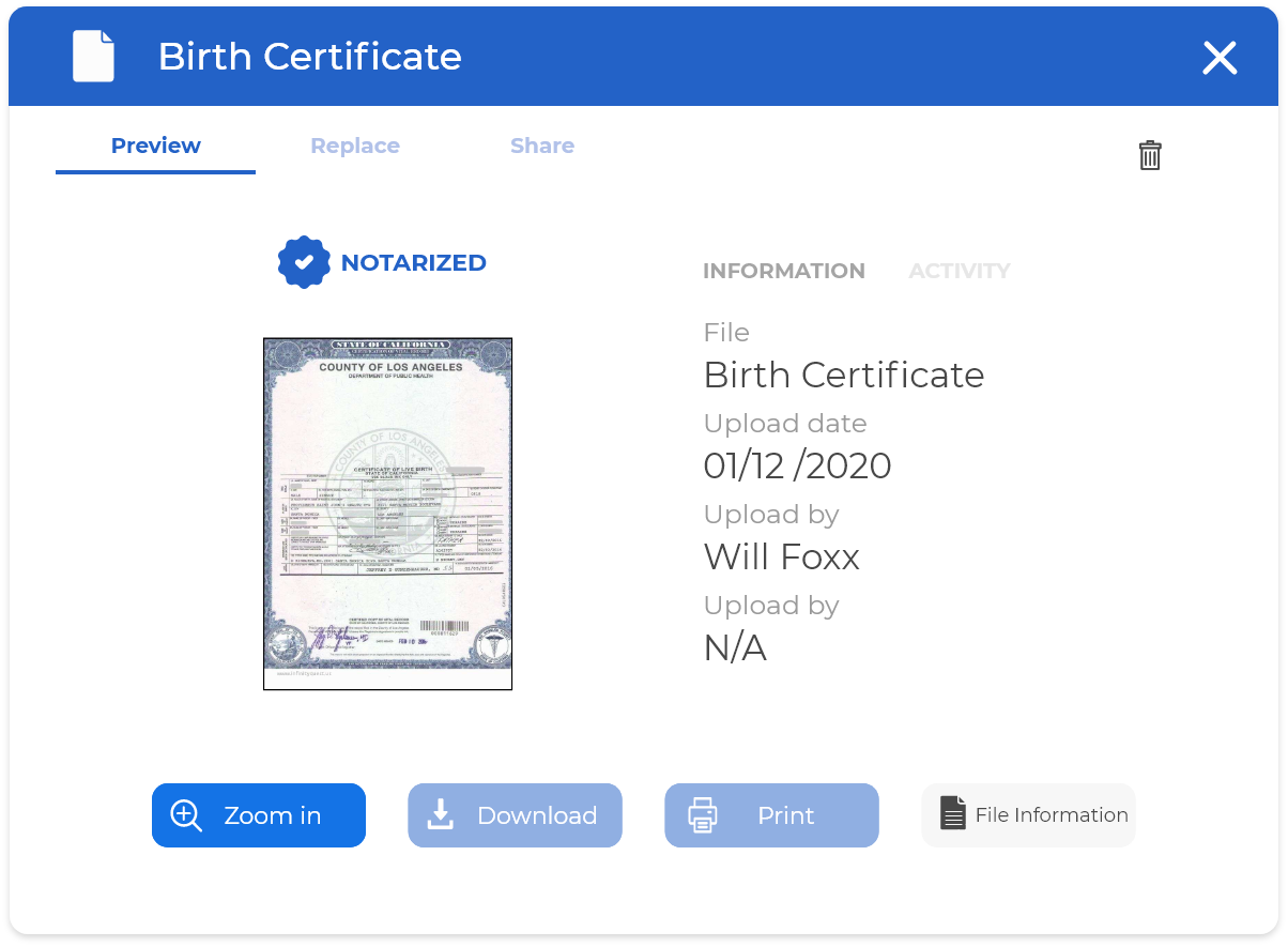 If a notarized copy is needed, a licensed notary can stamp, sign and upload it.