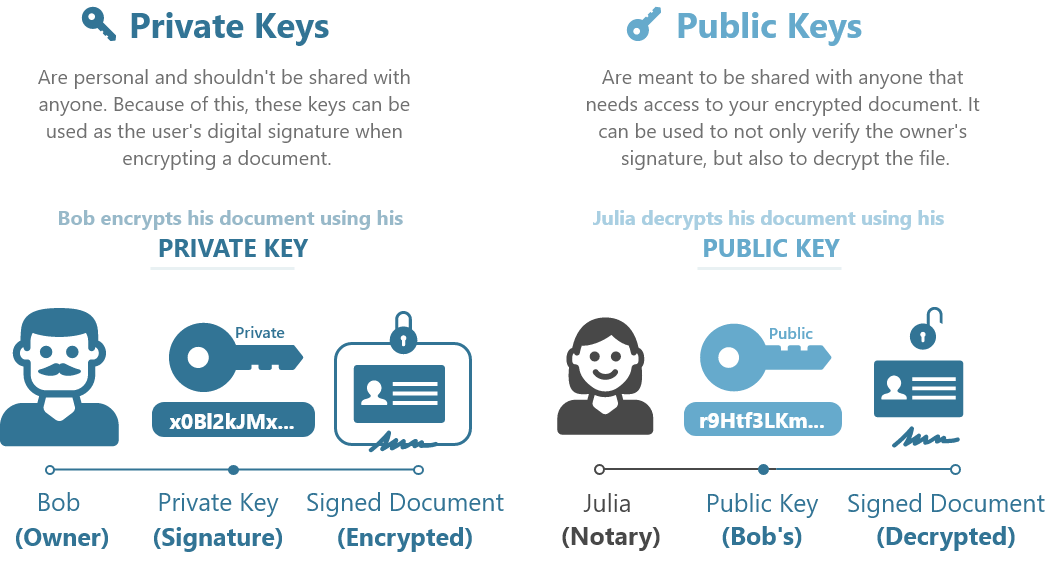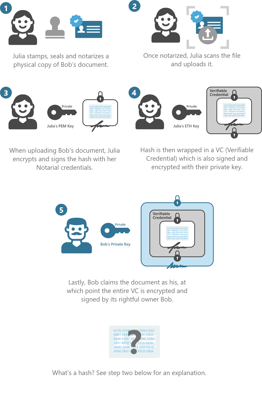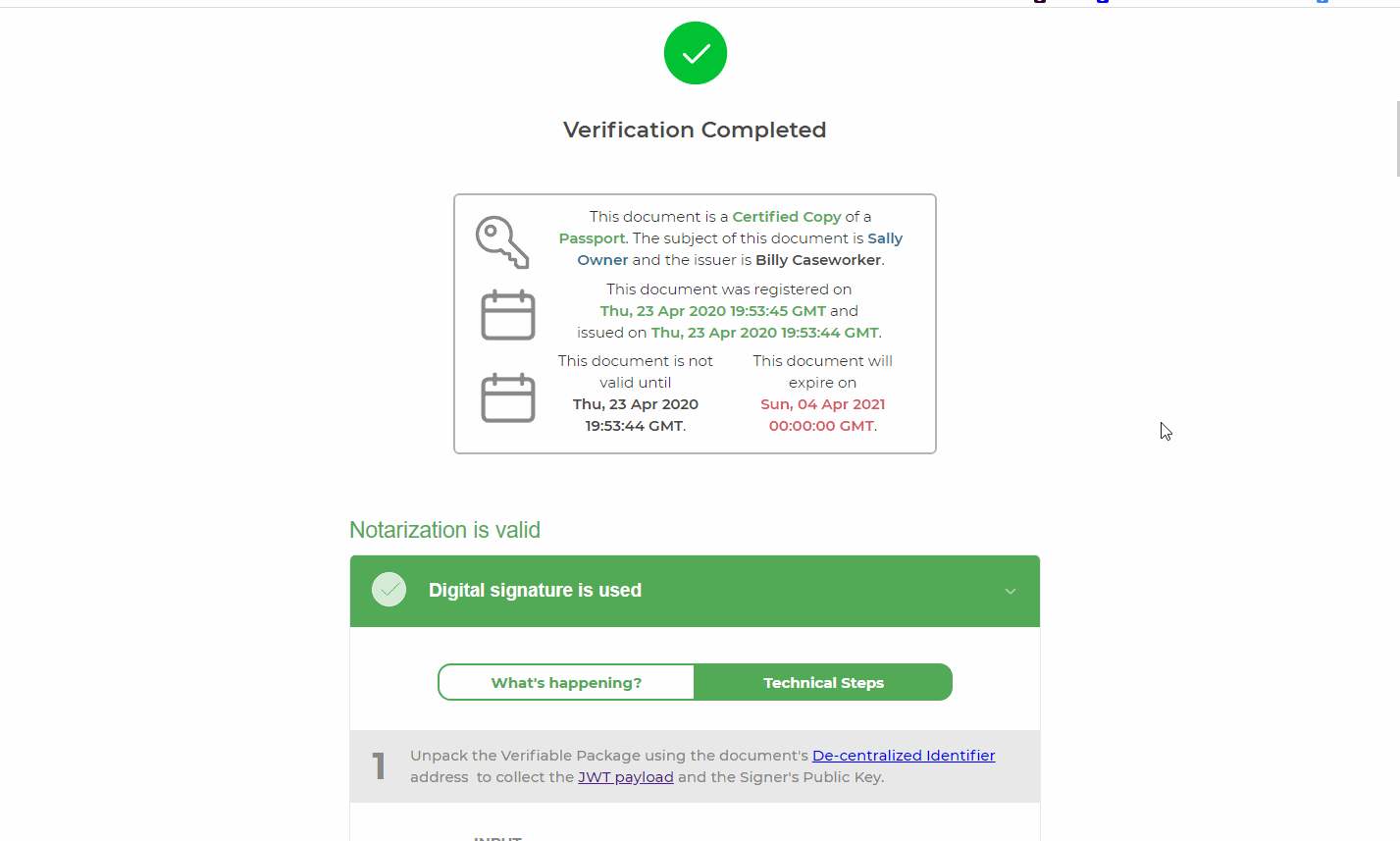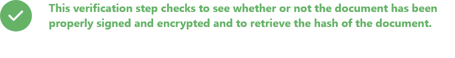 We developed a verification page that breaks down all encryption, decryption, hashing and verification steps in a comprehensive application, thoroughly examining each document to determine whether it is a valid notarized and shareable document.