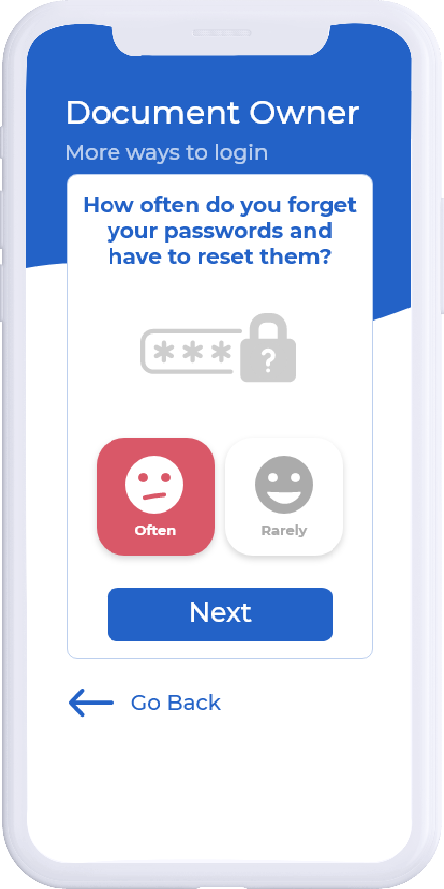With a pool of more than 30 candidates, we built an onboarding quiz that picks out login methods that are suited to each user's individual needs.